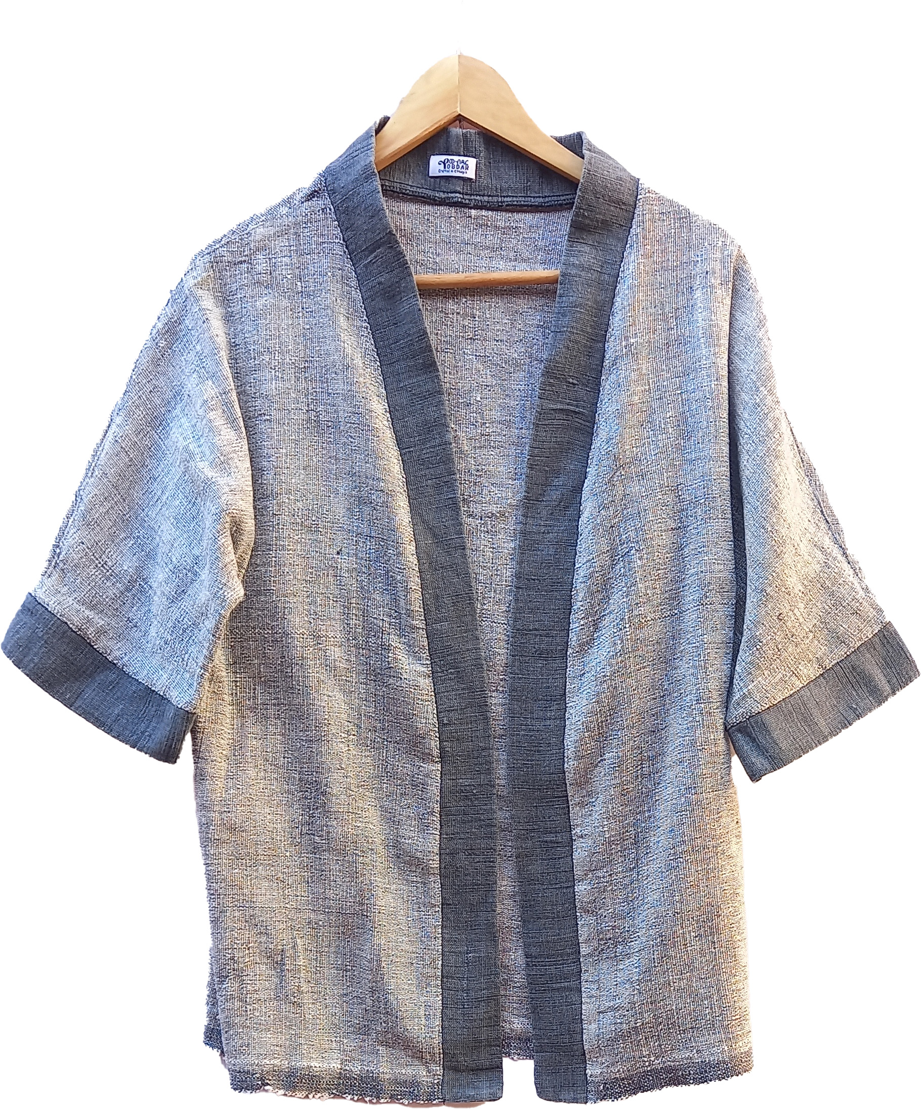 Crafted with extraordinary attention to detail, this handwoven kimono is a true masterpiece of traditional artistry. Made from 100% handspun cotton, it offers a beautifully textured and natural feel.  The warp threads skillfully dyed black to get this deep dark grey , creating a subtle yet striking interplay of tones. This kimono effortlessly combines timeless elegance with the authenticity of handmade craftsmanship, making it a versatile and unique addition to any wardrobe.”