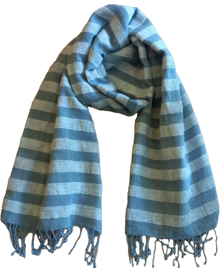 This handwoven scarf is a beautiful blend of hand spun and factory spun cotton, featuring alternating horizontal stripes that create a refined yet cozy aesthetic. Expertly crafted , it boasts a smooth yet subtly textured feel, highlighting the artistry behind its creation. The fabric is lightweight yet warm, making it perfect for layering while offering both comfort and sophistication. Designed for versatility, this piece can be gracefully draped over the shoulders as a shawl, adding a sophisticated touch to any outfit, or wrapped snugly around the neck for warmth and style. Finished with delicate fringed edges, this piece embodies timeless craftsmanship with a modern touch.